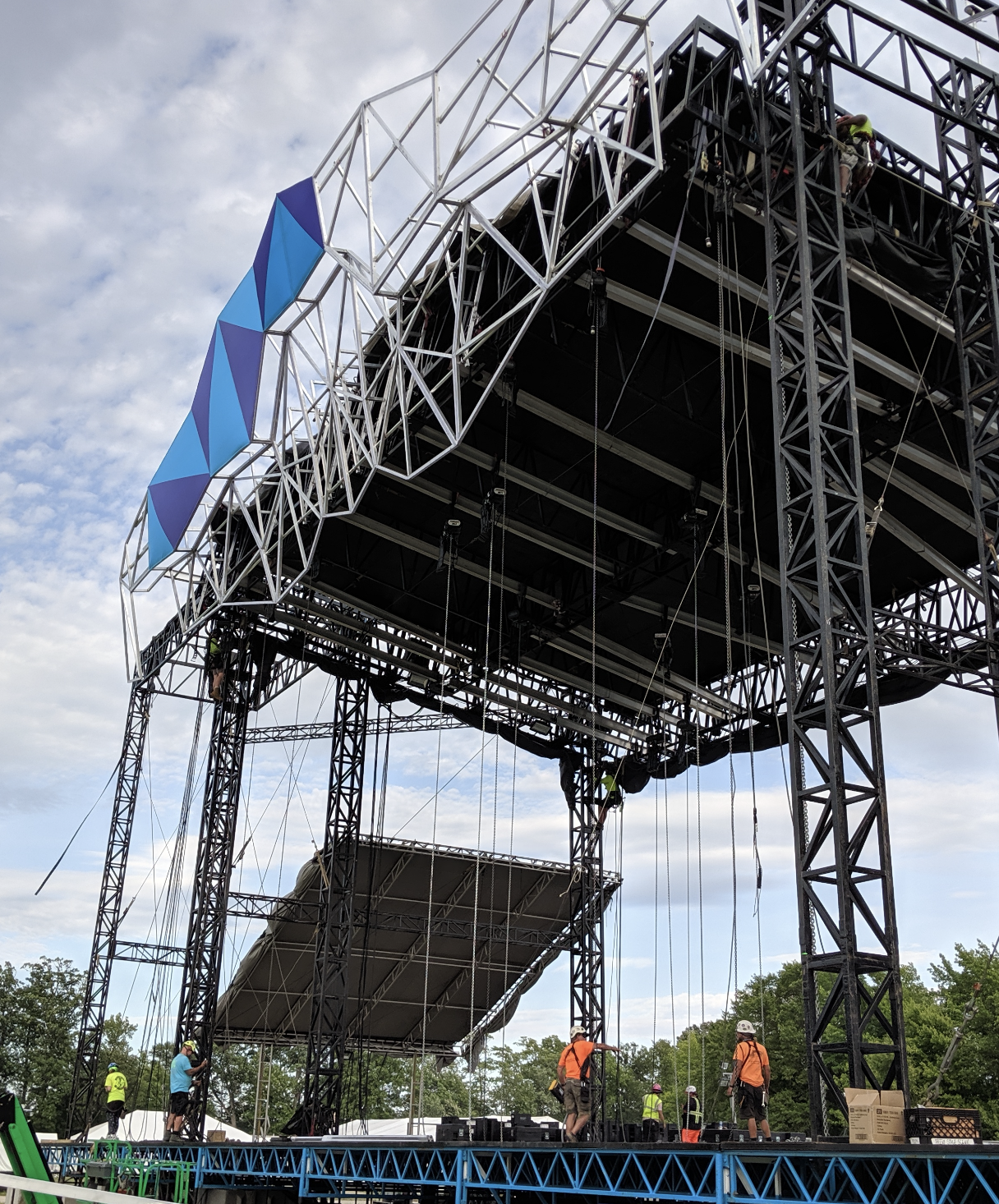 When putting massive panels high in the air, above a crowd in an outdoor environment, the risks can be extreme. Rain and high winds can come at a moment's notice, so expert engineering and fabrication excellence are a must.