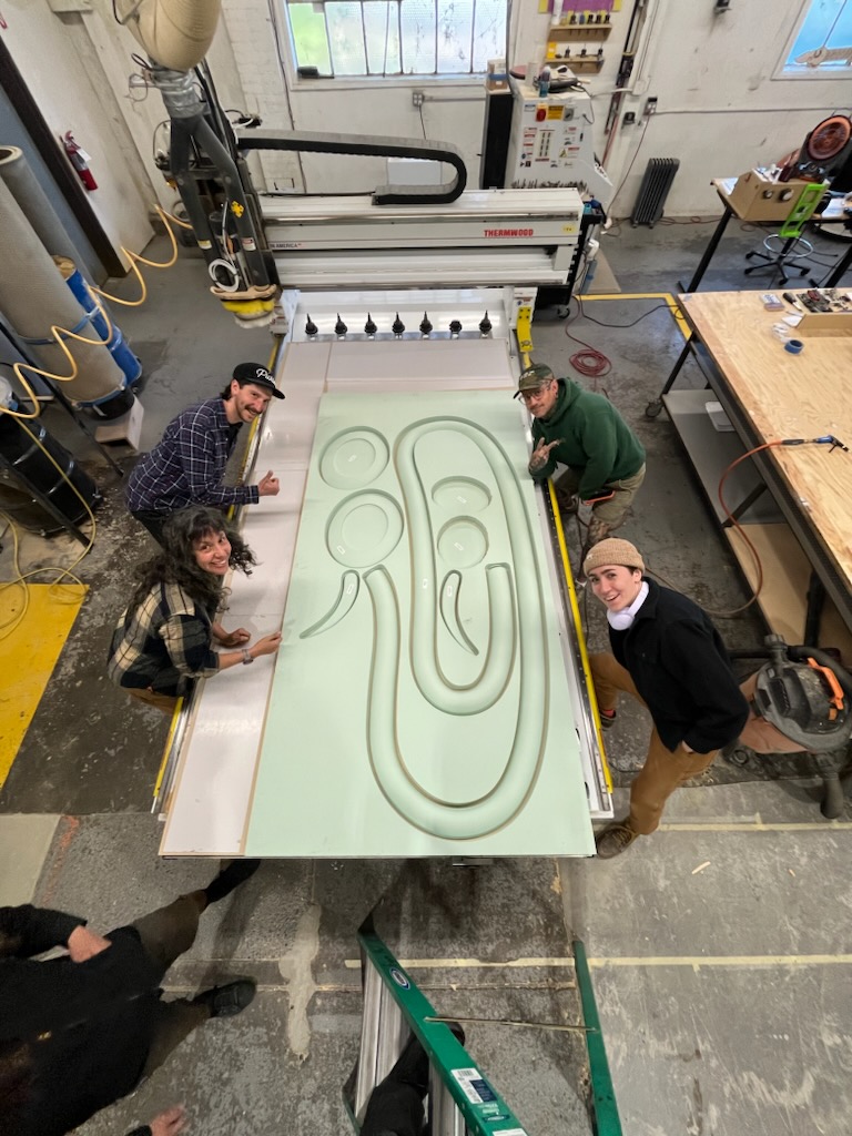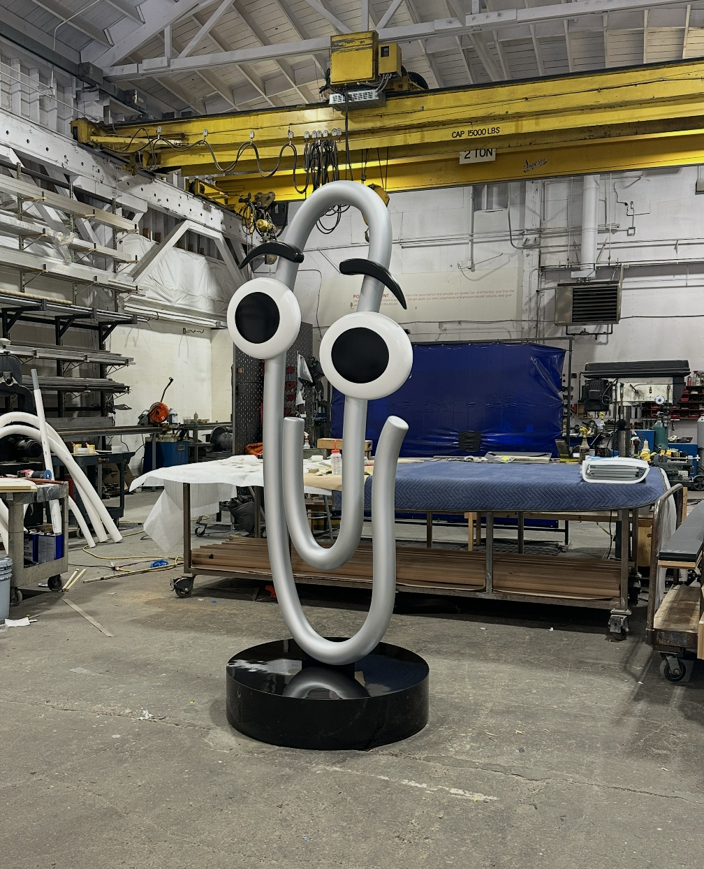 The Figure Plant team developed a lightweight solution by combining a custom steel internal skeleton with a high-density foam body, finished in a metallic paper clip coating. Removable facial features and a detachable high-gloss base make for safe handling, efficient transport, and simple setup for this traveling experiential sculpture.
